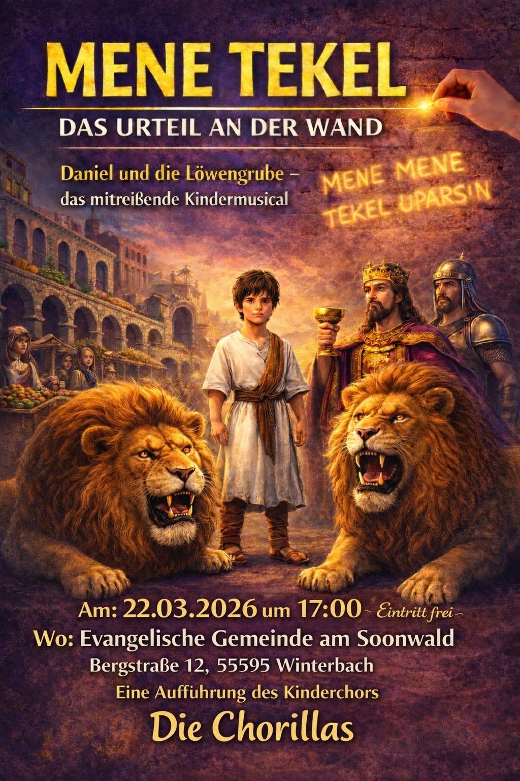 Die Chorillas laden ein zum Musikal „Mene Tekel – das Urteil an der Wand“